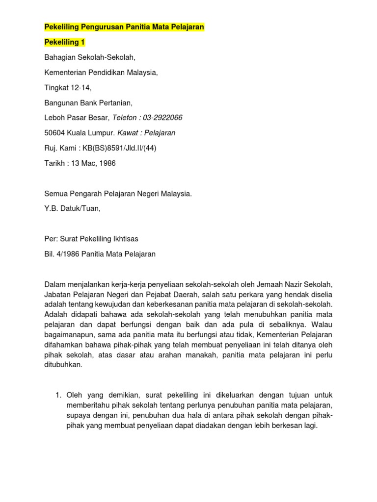 Satu surat pekeliling ikhtisas Bilangan 4 Tahun 1986 telah dikeluarkan oleh Kementerian Pendidikan bagi menjelaskan dengan lanjut fungsi dan peranan panitia mata pelajaran di sekolah. Bacaan Yaasin Solat Hajat Sempena UPSR 2010 7. Pasir halus in english pekeliling perkhidmatan bil 1 tahun 2016 pejabat tanah pasir mas kelantan payslip contoh slip gaji malaysia pembinaan spk sdn bhd sri hartamas pcb.
